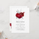 Chic vintage red coloured roses quinceanera birthday invitation with accents of silver foil.