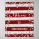 Poster print for welcome sign with faux silver glitter design and red stripes watercolor background.