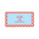 Red and teal blue patterned large return address labels, personalise text to your own information, colour choice options, and sticker label size choice.