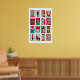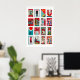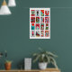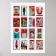 Red and Teal Matchbox Label Collage, cool contrast Poster