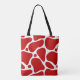 Red and white abstract giraffe pattern tote bag