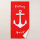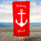 Red and White Anchor Personalised Script Name Bath Towel. Simply edit text to personalise!