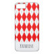 An iPhone 7/8 case designed with a red and white argyle pattern. Customise the iPhone case with your name or text among other options.