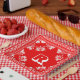 Red and white bandanna handkerchief pattern with a personal monogram.