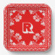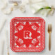 Red and White Bandanna Design With Monogram Paper Plate