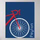 Clean and modern bicycle in red and white on a blue background complete with your name. You can change the background and text colour to customise to a different colours scheme if you like. Makes a great personalised gift for any cyclist or bicycle lover in your life. Matching products available.