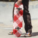 Red and White Bold Checkered Plaid Design Skateboard
