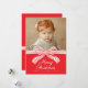 Send warm holiday wishes to your loved ones this season with this beautifully designed Red and White Bow Flat Christmas Photo card featuring a red background and a hand-drawn white bow accented with red stripes. The front of the card adds a timeless holiday touch with Merry Christmas in a script font, a spot for your favorite photo from the year and room to personalize with your name. The bow design continues on the back creating a cohesive and stylish look.