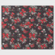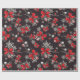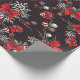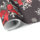 Red and White Bows Ornaments Snowflakes on Black Wrapping Paper