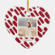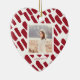 Red and White Brush Strokes with Photo and Name Ceramic Heart Ornament.