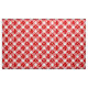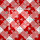 Fabric in a large, deep red and white buffalo plaid pattern, with a flurry white snowflakes