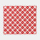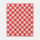 Fleece blanket in a large, deep red and white buffalo plaid pattern, overlaid with scattered white snowflakes