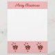 Destei's original illustration of a red and white striped Christmas candy cane treat decorated with a red bow and a Christmas holly / Common holly plant. The background colour is pink on the top and bottom while the middle is white. There is also a personalizable text area that now reads: "Merry Christmas".