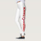 These white lady's leggings area a great way for cheerleaders to stay warm, with red block lettering reading Cheer Leader running up the both sides of the leggings. Red graphics of a cheerleader's silhouette decorates the sides, in between the lettering.