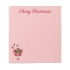 Destei's original illustration of a red and white striped Christmas candy cane treat decorated with a red bow and a Christmas holly / Common holly plant. The background colour is pink. There is also a personalizable text area that now reads: "Merry Christmas".