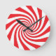 You can change the festive red peppermint background on this round wall clock to another colour. Add a name or monogram to create your own personalised design. You can even add curvature in the font settings.