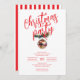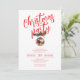 Bright and festive Christmas party invitation featuring 'Christmas Party' in bold handwritten text and a watercolor disco ball hanging from a pine branch. Customisable event details below. The back has a red and white striped pattern for a fun holiday touch!