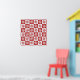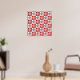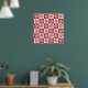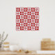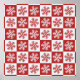 A poster with a seasonal design - repeating pattern of red and white snowflakes.