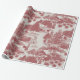 Celebrate Christmas right this year with this gorgeous wrapping paper featuring a toile design with a beautiful Christmas tree in the foreground being discovered by a curious child. A dancing couple, trees, Santa's sleigh, presents, and a reindeer all grace the med ground. And, in the background, there's a cosy winter cabin nestled amongst the hills, surrounded by trees.