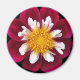 Decorative, round style magnet for home or office that features the photo image of a bright, red Collarette Dahlia with white, inner petals. A lovely, floral design! Select your magnet size.