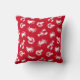 Fun red pillow printed with a pattern of funky crabs and lobsters. Cool seafood design for coastal homes, beach houses and beach bars.