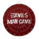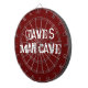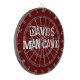 Perfect for the man cave, this custom dart board is done in dark red, with fun white bold text. Personalise the text to suit your needs. Perfect gift idea for the man who loves games.