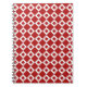 A bold graphic pattern of interlocking red and white diamond shapes. The white diamonds each contain a small red diamond making red the dominant colour of the geometric design.