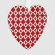 A bold graphic pattern of interlocking red and white diamond shapes. The white diamonds each contain a small red diamond making red the dominant colour of the geometric design.