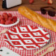 Red and white diamond pattern paper plate