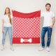 Red And White Dog Paws And Bone With Name Fleece Blanket