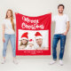 Red And White Family Photo Name Merry Christmas Fleece Blanket