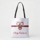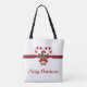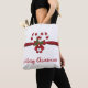 Red And White Festive Candy Canes Bow And Text Tote Bag