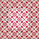 Elegant seamless pattern featuring red floral motifs framed by bold geometric grids, presented on a white background. Perfect for textiles, home decor, or graphic design projects requiring a sophisticated touch.