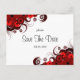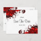 © Sunny Mars Designs - Floral Hibiscus: Red on White Wedding Save The Date Post Cards - Trendy, stylish, modern, chic, customisable custom printed wedding wedding save the date postcards with white and red, crimson, burgundy, ruby or maroon swirly tropical hibiscus floral design against a customisable white background.