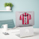 Football sticker. Red and white Football Shirt Design to Personalise. Add Name and Number.