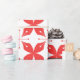 Red and white geometric pattern featuring stylised leaves and dots arranged in a symmetrical, repetitive design. The tone is vibrant and harmonious.