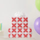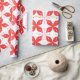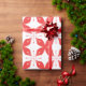 Red and white geometric pattern featuring stylised wrapping paper