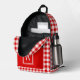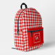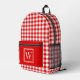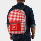Red and White Gingham Check Plaid Monogram Printed Backpack