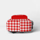 This cute backpack features a classic red and white gingham chequered plaid pattern with a solid matching red pocket.  Personalise the monogram on the pocket with your choice of initial.