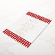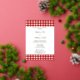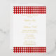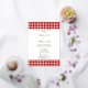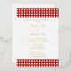 Red and white gingham pattern bbq foil invitations. Two shades of red stripes.