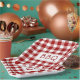 Get ready for your summer barbecue party with paper plates featuring a red and white buffalo plaid with the letters BBQ in a white rectangle in the centre.