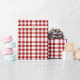 Dark red, white, and light red squares form a bold, buffalo plaid. The red and white gingham pattern makes me think of fun summer picnics.