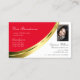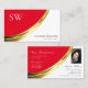 Very elegant red and white coloured business card design with a noble shimmery gold decor.