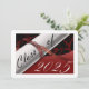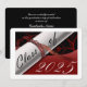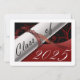 Red and white graduation card with a diploma and year of graduation on it. The back is a black background with white lettering for the graduation annoucements.