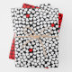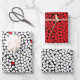 Lovely red and white hearts on a black background. There are three sets of flat wrapping paper sheets. The first is red and white hearts on a black background. The second is red hearts on a black background and the third is white hearts on a black background. A lovely way of wrapping up a gift for a special person.