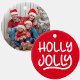 Cute red and white Holly Jolly typography for your round Christmas ornament.