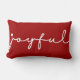 Red and White Joyful with Heart Holiday Lumbar Cushion