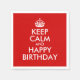 Customisable red and white "Keep Calm and Happy Birthday" text design based on a classic. You can edit the font size, style and background colour to make your own design.
