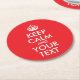 Red and White Keep Calm and Your Text Round Paper Coaster