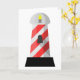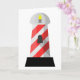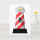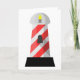 A really cool looking lighthouse design. This lighthouse is red and white striped and really makes for a great effect. This lighthouse has a black base, the red and white striped body and then the light at the top. This red and white lighthouse design looks great on these greeting cards